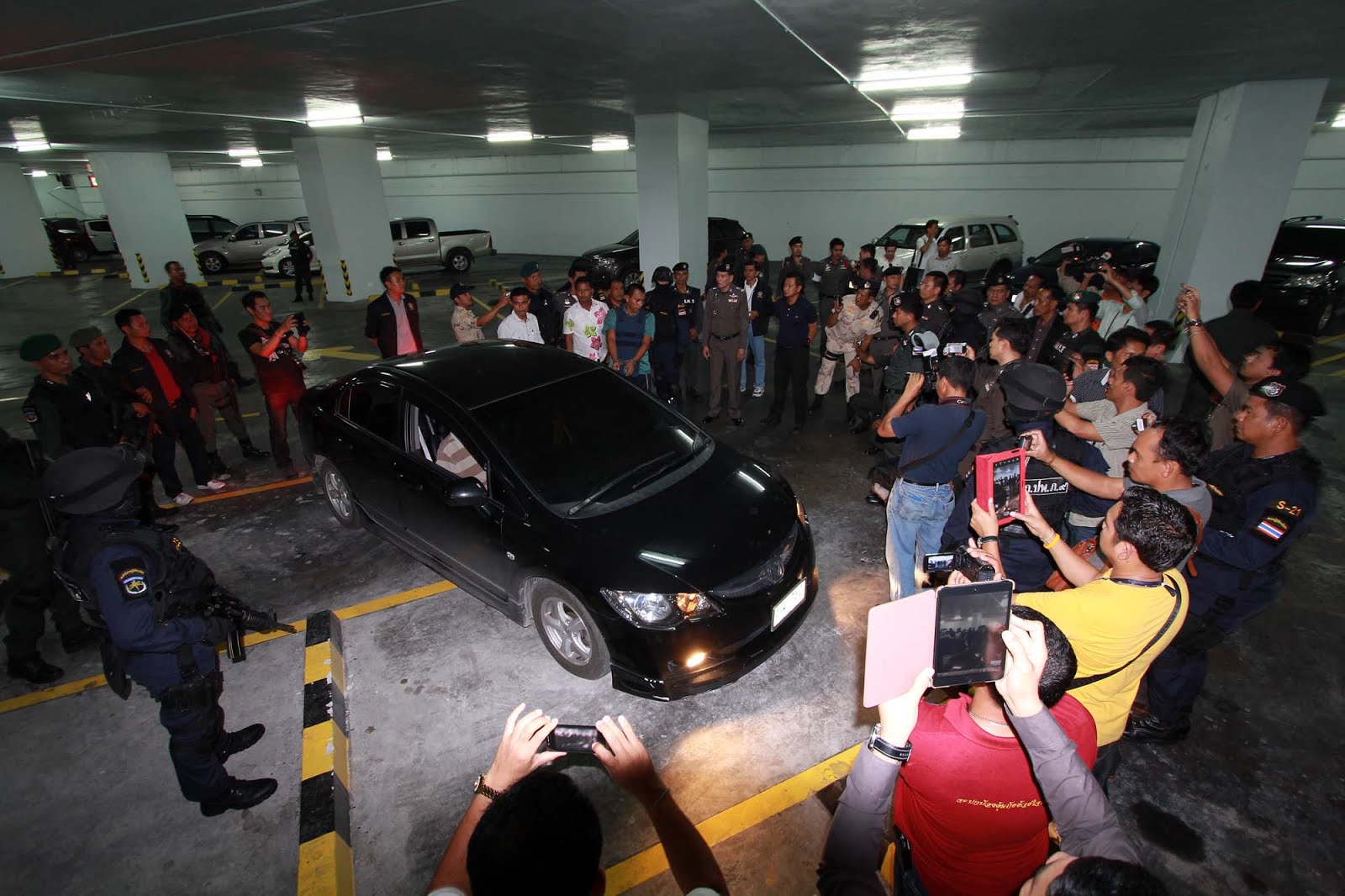 โดยได้ขับผ่านทางช่องทางขาเข้าข้างโรงแรม และจอดแวะรับบัตรจอดรถที่จุดตรวจ ก่อนที่จะขับลงไปจอดยังชั้น B3 ซึ่งเป็นจุดเกิดเหตุ จากนั้นทั้งสองคน จึงได้เดินขึ้นมาจากชั้น B3 ผ่านลานจอดรถจักรยานยนต์ชั้น B2 เดินเข้าไปในห้างซึ่งอยู่ชั้นB1 และขึ้นบันใดเลื่อนไปยังชั้นG และออกไปทางประตูหน้าโรงแรมซึ่งตรงกับภาพที่กล้องวงจรปิดบันทึกได้